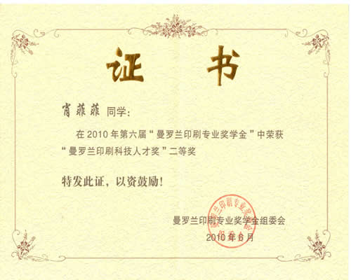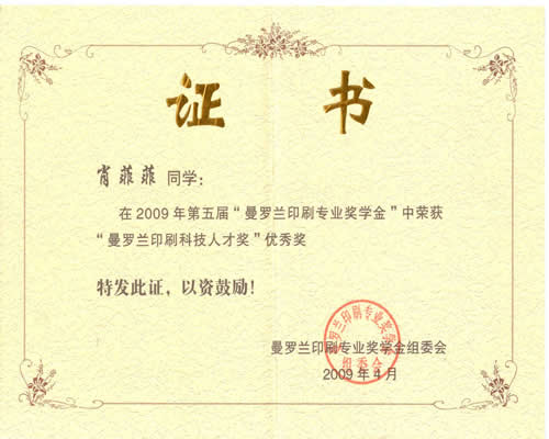 曼罗兰印刷专业奖学金获奖情况表