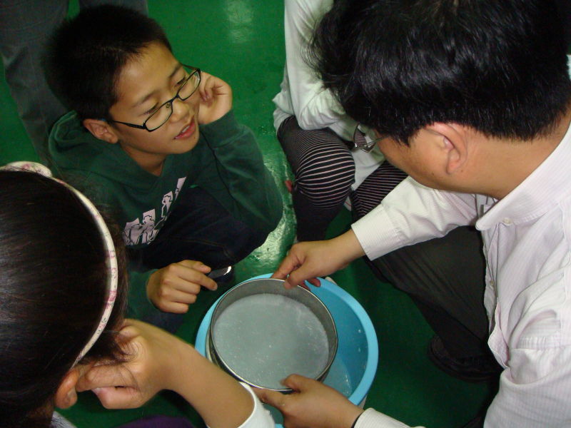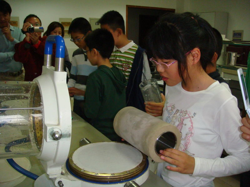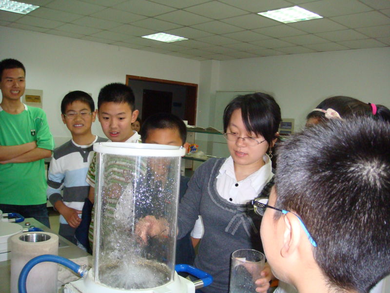 2011年科普周,我校接待了来自南师附中江宁分校小学部的学生和家长参观实验室,并且进行造纸实验。